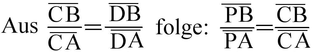 Behauptung: Es gilt der Satz des Appolonius, er besagt, dass die Abstände eines Kreispunktes P von A und B sich so zueinander verhalten wie die Abstände des Punktes C von A und B.