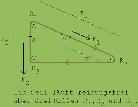 Berechnung der auf die Rolle R1 wirkenden Kräfte F1 und F2 nach dem Satz von der Erhaltung der Energie