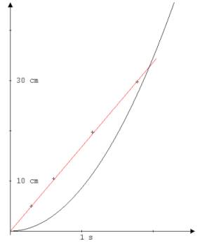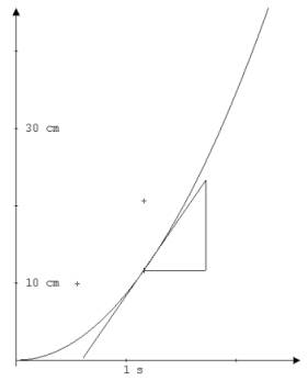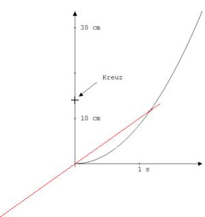 Zu diesem Zweck werden Momentangeschwindigkeiten v zu verschiedenen Zeiten bestimmt. Es werden Tangenten angelegt und die zugehörenden Steigungen (Steigung = Momentangeschwindigkeit) ermittelt.