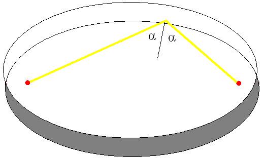 Ein spiegelndes Band auf einer Ellipse ( siehe Abb. 2) reflektiert einen Lichtstrahl, der von einem Brennpunkt ausgeht, zu einem anderen Brennpunkt.