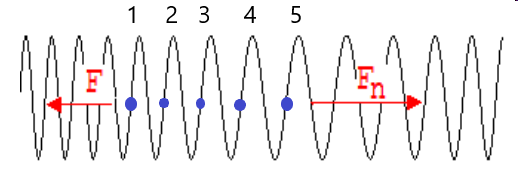 Einen Wellenträger können wir gedanklich in viele Abschnitte gleicher Masse einteilen und jedem dieser Abschnitte eine beschleunigende Kraft F zuordnen. Nach der Richtung von F unterscheidet man Längs- und Querwellen. Ist F wie bei der Federwelle parallel zur Ausbreitungsrichtung, dann spricht man von einer Längswelle (Longitudinalwelle) , andernfalls, z.B. im Fall der Seilwelle, von einer Querwelle (Transversalwelle). Die Kräfte F bilden ein Kraftfeld.