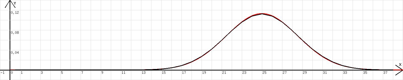 m=50;x=x+0,01;k=int(x); u=k; v=m!/(k!*(m-k)!)*0,5^m; y=1/wrz(0,5*pi*m)*exp(-2/m*(x-1/2*m)^2);l=x