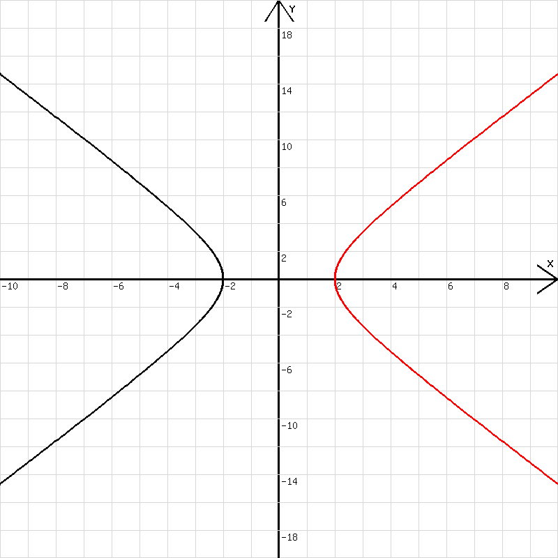 cosh(d)2 - sinh(d)2 = 1 → x2 / 4 - y2 /9 = 1