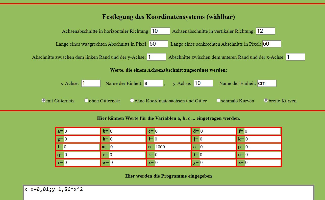 In der Abb. 4 ist der zugehörende Funktionsgraph (rot) zu y = 1,55 · x2 sehen. Er wurde mit dem hier verfügbaren Grafikprogramm gezeichnet.