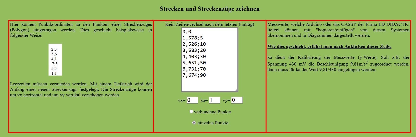 Den Zeit-Weg-Paaren werden Variablenpaare x | y (x = t ; y = s) zugeordnet.