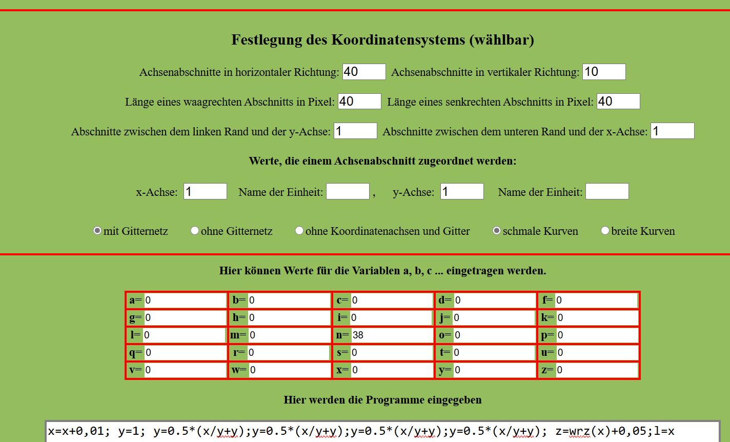 Mit dem Nachfolgenden Programm wird wird das durch Iteration gewonnene y in Abhängigkeit von x dargestellt (rotes Diagramm). Das an dieses Programm angehängte z=wrz(x)+0,05 soll die Genauigkeit der Iteration zeigen. wrz(x) steht für √(x). Die durch Iteration gewonnene Kurve wird von dem Grafen zu z=wrz(x) abgedeckt.