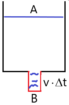 Eine Begründung kann mit Hilfe des Energiesatzes gegeben werden. Dieser Satz ermöglicht die Berechnung der Geschwindigkeit, mit der das Wasser aus dem Gefäß heraustritt.