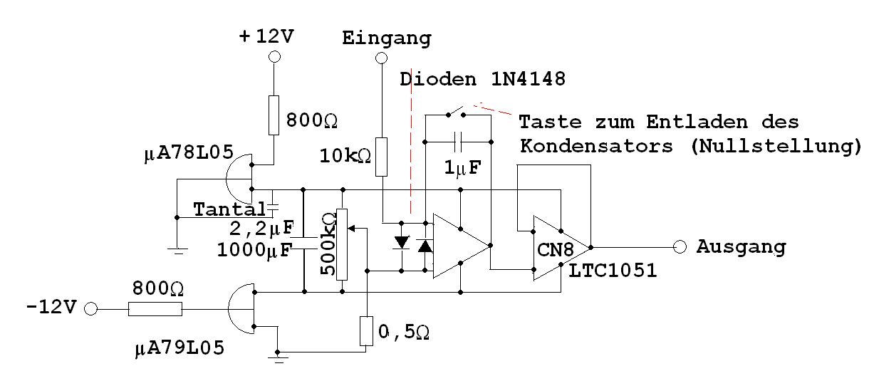 Es wird gezeigt, wie man auf einer vom Verfasser entwickelte Platine (der Verfasser gibt sie zum Selbstkostenpreis ab) einen sehr präzise arbeitenden Integrator zur Ladungsmessung realisieren kann. Integrator heißt diese Schaltung zur Ladungsmessung aus folgendem Grund: