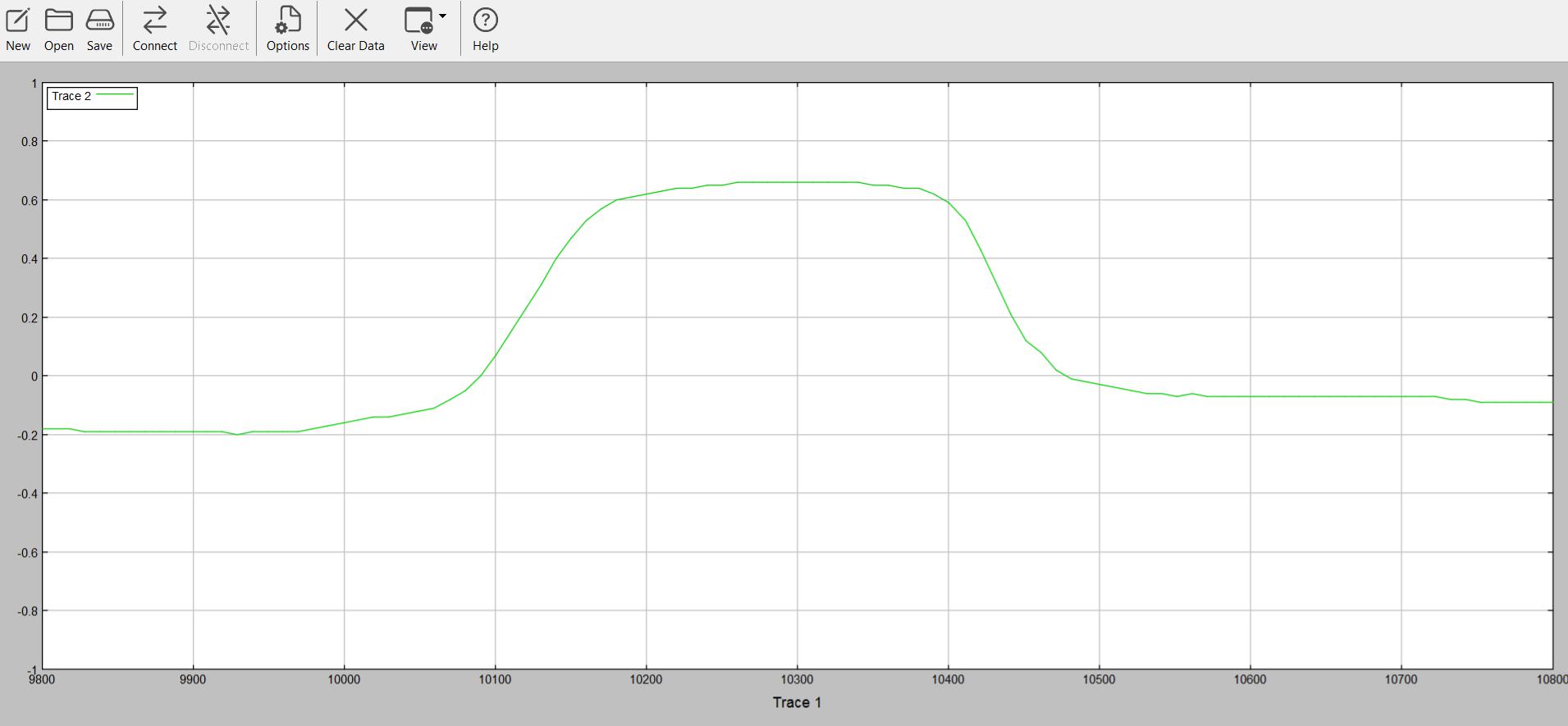 Unter Data Source wird Data Column 1 gewählt und unter y-Axis wird Fixed, Min -2, Max 2 angeklickt