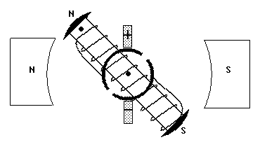 Vorbemerkung: Die Behandlung der Transformationsgleichungen zu einer Drehung wurde von den Schülern einer 10. Klasse nach einer Physikstunde gewünscht, in der ich die Funktionsweise eines Elektromotors auf einem Computerbildschirm (Projektionsdisplay) anhand der in Abb. 1 angedeuten Folge aus acht Bildern (Film) erklärt hatte. Als mich die Schüler nach der für diesen Film notwendigen Arbeitszeit fragten, sagte ich unter anderem, daß man den Läufer des Motors nur in einer Stellung zeichnen müsse, weil man sein Bild mit einem Rechner drehen könne. Ich versprach, die Bilddrehung in einer der nächsten Mathematikstunden mit Hilfe eines von mir geschriebenen Programms mit dem Namen "Mathe. - Physik" zu erläutern.