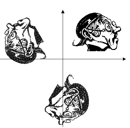 Er erfaßt die Koordinaten der Bildpunkte, ordnet ihnen die Koordinaten gedrehter Punkte zu und stellt diese graphisch dar.