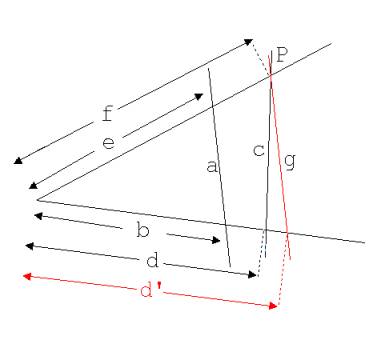 d’ = d zeigt an, dass c auf g liegt und somit entgegen der obigen Annahme zu a parallel ist.