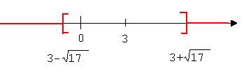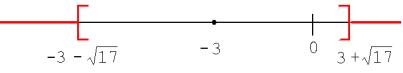 Die nach außen gerichteten Klammern zeigen an, dass die Ränder –3 - √(17) und -3 + √(17) nicht zur Lösungsmenge gehören. Dies wäre anders im Fall „≤“.