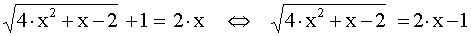 4· x2 + x - 2 = 4 · x2 – 4 · x + 1 ↔ 5 · x – 3 = 0