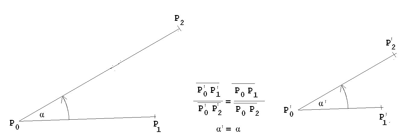 Zwei Gebilde A und A' werden einander ähnlich genannt, wenn allen Punkten von A entsprechende Punkte auf A' so zugeordnet werden können, dass A und A' in entsprechenden Winkeln und entsprechenden Seitenverhältnissen übereinstimmen. Es muss dabei gleichgültig sein, welches der beiden Objekte mit A bzw. mit A' bezeichnet wird. Ähnliche Objekte können durch zentrische Streckung S(Z; m) in kongruente Gebilde verwandelt werden.