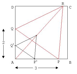 Beschreibe einem Quadrat ABCD ein gleichseitiges Dreieck PQR so ein, dass P auf [AB] und Q auf [AD] liegt, wobei gelten soll: