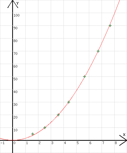 In der Abb. 4 ist der zugehörende Funktionsgraph (rot) zu y = 1,55 · x2 sehen. Er wurde mit dem hier verfügbaren Grafikprogramm (online) gezeichnet.