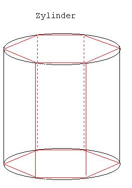 Einem Zylinder der Höhe h kann ein Prisma einbeschrieben werden. Durch Vergrößerung der Eckenzahl erreicht man eine bessere Anpassung des Prismas an den Zylinder. Das Volumen eines einbeschriebenen Prismas strebt mit wachsender Eckenzahl gegen das Produkt: