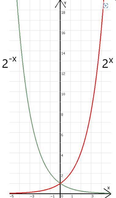 Den Graphen y = 2-x erhält man, indem man den zu y = 2x gehörenden Graphen an der y - Achse spiegelt.