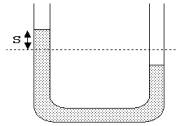 Bei gedanklichen Umgang mit dem U-Rohr wird an das Hineinblasen gedacht. Bei einem solchen Experiment steigt die Flüssigkeit in einem Schenkel um 2·s über die des anderen Schenkels (siehe Abb. 3.4). s ist die Abweichung von der Ruhelage.
