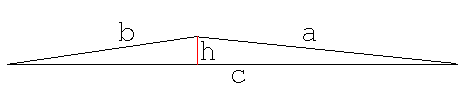 Bei Verkleinerung einer Höhe fällt auf, dass ein Term für den Flächeninhalt den Wert 0 ergeben muss, wenn eine Seite gleich dem halben Umfang s = (a+b+c)/2 ist. Auch mit schwindendem s muss dieser Term gegen o gehen. Ein Term mit diesen Eigenschaften ist das Produkt s·(s-a)·(s-b)·(s-c). Dieser Term kommt aber nicht für den Flächeninhalt in Frage, weil er als Einheit m4 oder cm4 hat.