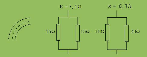 In der unter 3.3.4 behandelten Wheatstonebrücke sehen wir Widerstände, die in Reihe und solche die parallel geschaltet sind. Abb. 1 ist die Darstellung einer Reihenschaltung und Abb. 2 die einer Parallelschaltung.