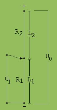 U1 = R1 · I = R1 · U0 / ( R1 + R2 )