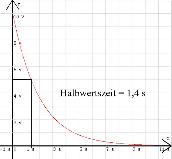 Zur Beschreibung des Entladungsgeschwindigkeit wird meistens die Halbwertszeit angegeben, es ist die Zeit th, während der die Spannung auf die Hälfte ihres Anfangswertes absinkt. Für diese Halbwertszeit gilt: