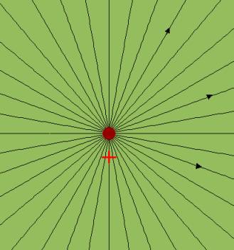 Die Kraftlinien sind von der Kugeloberfläche ausgehende Strahlen. |
