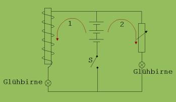 Wird der in Abb. 1 sichtbare Schalter S geöffnet, dann leuchtet die beiden Glühbirnchen nach.
