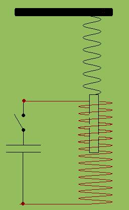 Damit diese Gleichung mit den schulüblichen Kenntnissen der Mechanik hergeleitet werden kann, wird die Versuchsanordnung in Gedanken abgewandelt. Nach Abb. 1 hängt der Magnet an einer Spiralfeder ( Federkonstante D) in der Spule mit 20000 Windungen. Eine Kondensatorentladung verursacht einen kurzzeitigen Kraftstoß und erteilt damit dem Magneten einen Impuls p = m·vo, je nach Polung nach oben oder nach unten. Der Magnet beginnt zu schwingen. Für die Elongation der Schwingungen gilt: