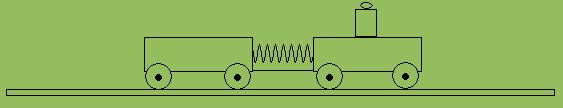 2. Auf einer horizontalen ebenen Fläche stehen zwei Experimentierwagen mit den Massen m1 = 150 g und m2 = 250 g. an dem einen Wagen ist eine gestauchte Schraubenfeder befestigt. Ein Faden verbindet die beiden Wagen und sorgt dafür, dass sie nicht von der Feder auseinander getrieben werden. Wenn der Faden zerschnitten wird, dann bekommt der Wagen mit m1 die Geschwindigkeit v1 = 2 m/s.