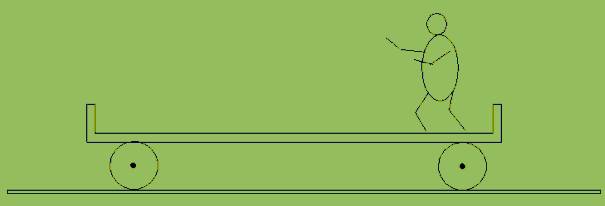 2. Auf einem ruhenden, m2 = 100 kg schweren Wagen steht eine mP = 90 kg schwere Person. Diese Person geht 5m von dem einen Ende des Wagens zum anderen.