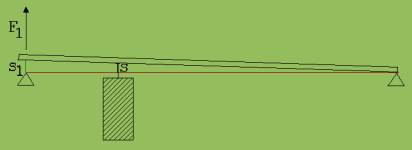 Im Fall 1 wird die Stange an beiden Enden um s angehoben (siehe Abb. 2). Im 2. Fall erfolgt die Anhebung um s durch eine Drehung um den rechten Auflagepunkt (Abb. 3).
