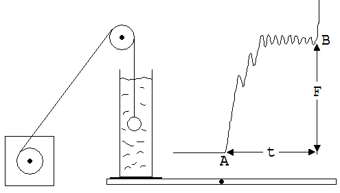 Der Punkt A des hierbei aufgenommenen Diagramms kennzeichnet den Beginn der Bewegung. Die auf die Wippe wirkende Kraft wird um die Reibungskraft vergrößert. Der Punkt B ist der Berührung der Kugel mit dem Boden des Zylinders zuzuordnen. Die Reibungskraft sowie die Bewegungszeit werden durch die vertikalen- und horizontalen Abstände der beiden Punkte angezeigt. Lässt man die Kugel verschieden schnell von der Oberfläche des Öls bis zum Gefäßboden herab sinken, dann ist festzustellen, dass F ~ 1/t ist. Mit der doppelten Zeit ist die Reibungskraft nur noch halb so groß.