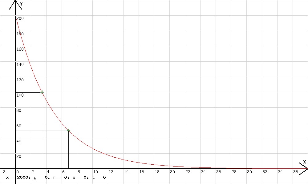 m = m0·2 –t/th; th = 0,69 / k → m = m0·2 – (1/0,69) ·k·t → m = m0·[2 (1/0,69)] –k·t
