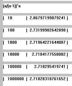 Angesichts dieser Tatsache erscheint es sinnvoll, e als Grenzwert von [a/(a-1)]a zu definieren.