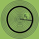 Zur Berechnung der Rotationsenergie denken wir uns den Zylinder mit dem Radius R, der Masse m und der Breite B in n konzentrische, dünnwandige Hohlzylinder mit den Radien rk und den Wanddicken d = R/n eingeteilt (Bsp.: n = 500). Für die Rotationsenergie e eines solchen Hohlzylinders mit der Masse mk gilt: