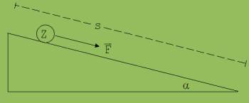 Lässt man statt des Zylinders eine Eisenkugel eine schiefe Ebene hinabrollen, dann ist zu erfahren, dass 5/7 der Hangabtriebskraft F für die Beschleunigung des Kugelschwerpunkts maßgebend sind.