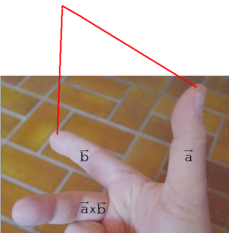 a, b und a x b verhalten sich der Richtung nach wie der Daumen, der Zeige- und der Mittelfinger der rechten Hand, wenn der Mittelfinger von den beiden anderen rechtwinklig abgespreizt ist ( Rechte-Hand-Regel ).