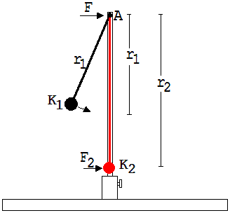 Schlussfolgerung: Der Stativstab erfährt während dieses Ereignisses keine Kraft, die Kraft von K1 wird völlig auf K2 übertragen.