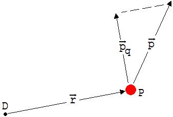 Wir denken uns ein Teilchen P, welches im Augenblick den Impuls p hat, und von einem Ortsvektor r angezeigt wird, der von einem beliebig gewählten Punkt D ausgeht. P kann frei beweglich sein.