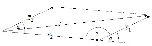 |F|2 = |F1|2 + |F2|2 – 2· |F1| ·|F2|·cos γ