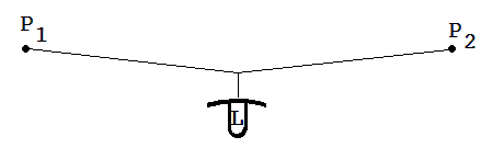 An einer Leine, die zwischen zwei Punkten P1 und P2 aufgespannt ist, sei eine Lampe aufgehängt (siehe Abb. 9) . Man darf nicht davon ausgehen, dass P1 und P2 jeweils die halbe Gewichtskraft der Lampe aushalten müssen. Die auf sie wirkenden Zugkräfte sind meistens erheblich größer als die Gewichtskraft des aufgehängten Gegenstandes.