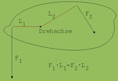 Zwei an einem Hebel angreifende Kräfte mit gegensätzlichem Drehsinn verursachen keine Drehung, wenn die Beträge ihrer Drehmomente übereinstimmen ( siehe Abb. 2).