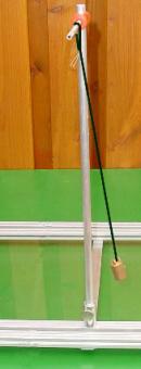 Wie in Abb. 1 erkennbar, lässt man ein Fadenpendel über der Experimentierwippe an einem Stab schwingen. Schwingt das Pendel nahe der Glasplatte, dann erhält man bei kleinen Auslenkungen ein t-s-Diagramm des schwingenden Körpers.