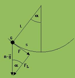 Als Auslenkung s erhalten wir: s = L ·α (α = Winkel im Bogenmaß)