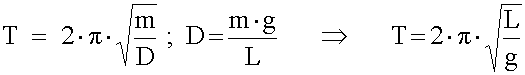 Zur Berechnung von D muss die zurücktreibende Kraft F zu einer Auslenkung s bestimmt werden. Die für die Schwingung verantwortliche Erdanziehungskraft m · g verhält sich in Bezug auf den schwingenden Körper G wie ihre beiden in der Skizze angedeuteten Komponenten F und FL . F ist die zurücktreibende Kraft. Für sie gilt: F = m ·g · sin α