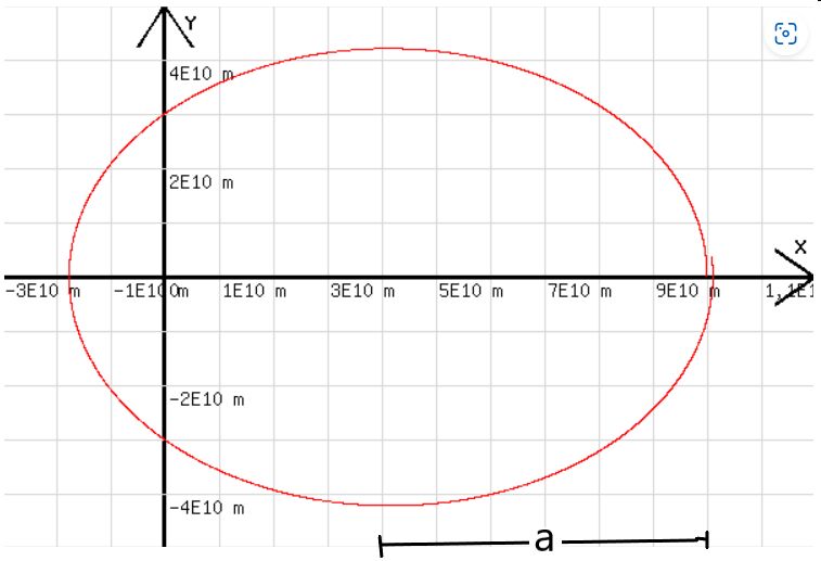 Anfangswerte von x =1E11 m und d= vy =20000 m/s