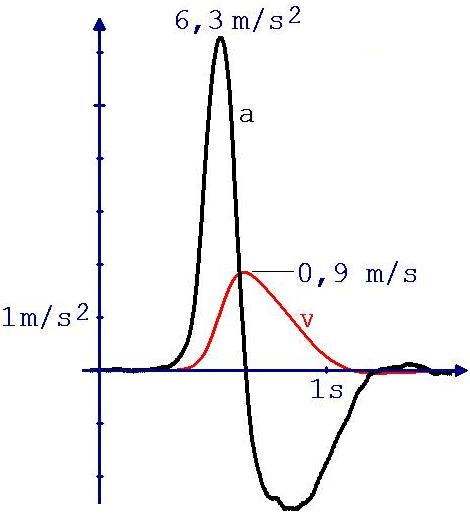 Mit Hilfe von „Mathe.-Physik“ kann aus einem a-t-Diagramm schnell ein v-t-Diagramm entwickelt werden (rote Kurve). Dies geschieht in folgenden Schritten: